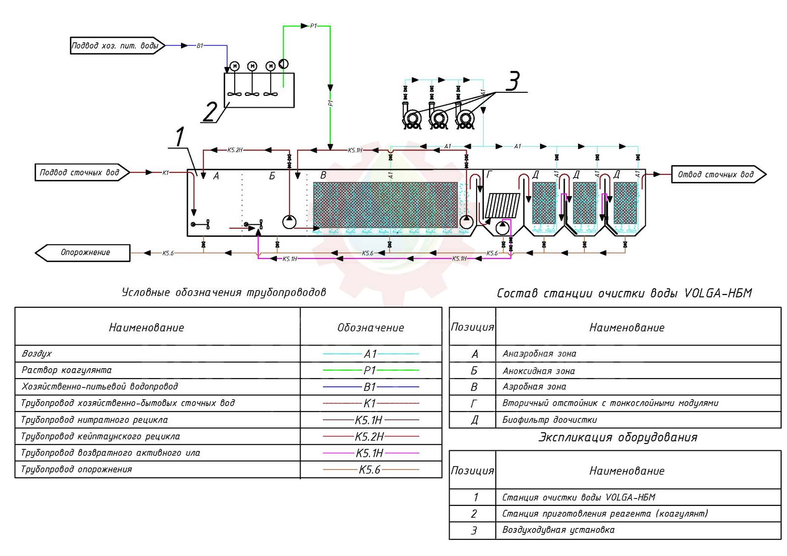 - Для зон денитрификации (удаление азота) используются погружные мешалки (миксеры), создающие бескислородные условия.