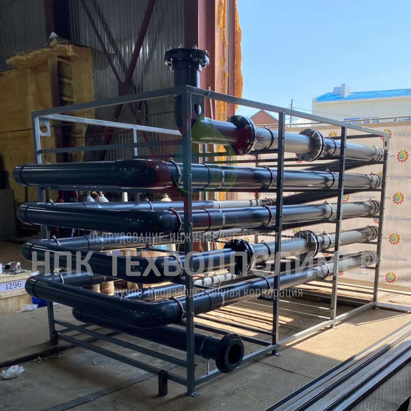 Принцип работы: загрязненная жидкость с реагентами проходит через систему труб, где ламинарный поток и смесители создают оптимальные условия для формирования хлопьев. Конструкция обеспечивает регулируемую скорость потока и время прибывания, необходимые для полного протекания процессов коагуляции и флокуляции.